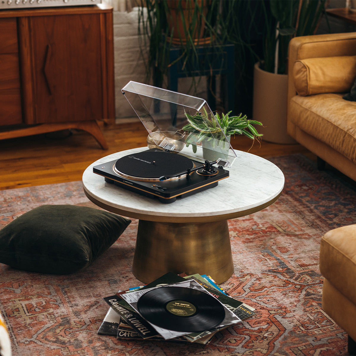 The AT-LP70XBT fully automatic wireless belt-drive turntable is designed for budding vinylphiles – those who love sitting back with the album art in hand to enjoy warm, analog music as the artist intended. Added Bluetooth® wireless technology gives you the option to listen to your vinyl over Bluetooth-enabled speakers, headphones, or other devices, including those that support the high-quality Qualcomm® aptX™ Adaptive audio codec.