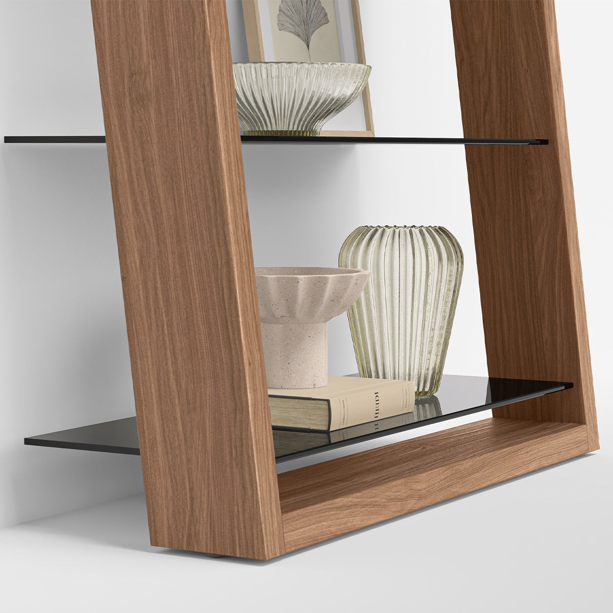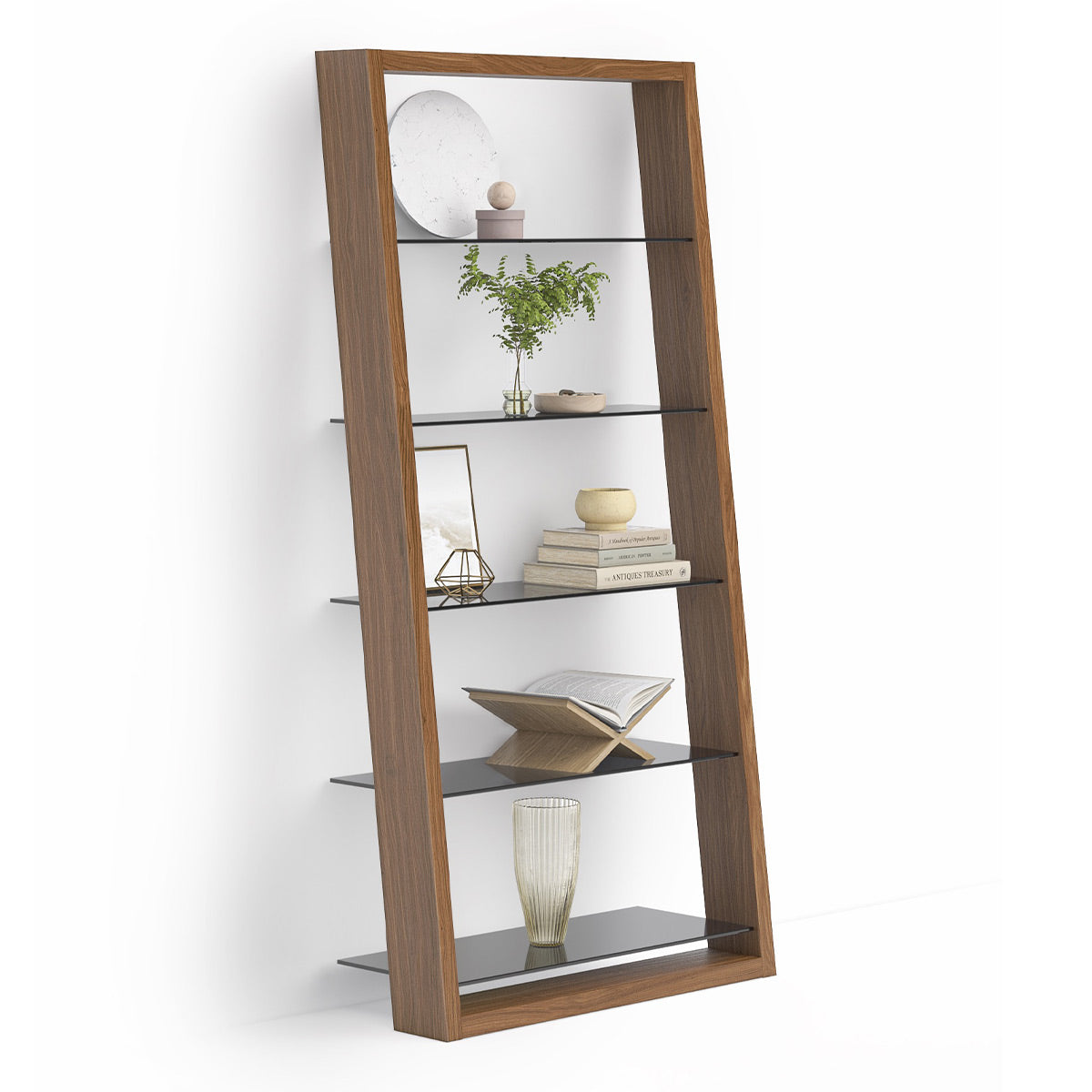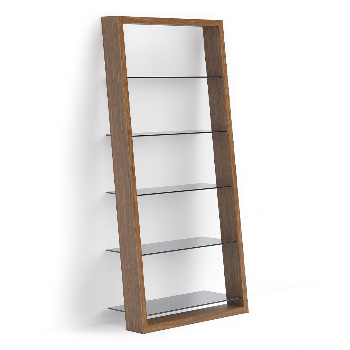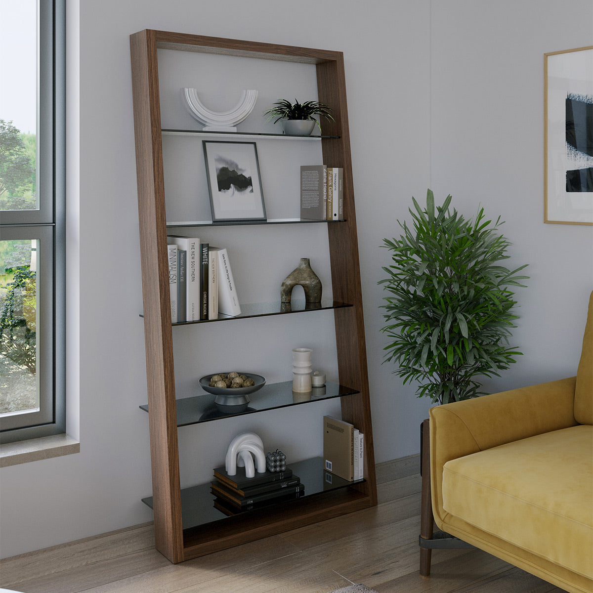 BDI Eileen 2.0 5166 Leaning Shelf with Grey-Tinted Glass Shelves (Natural Walnut)