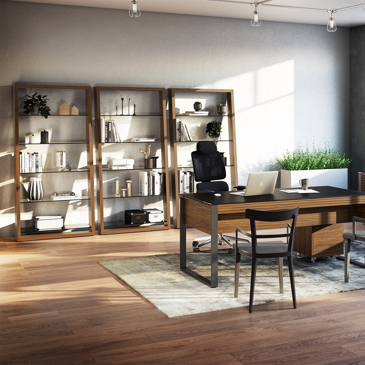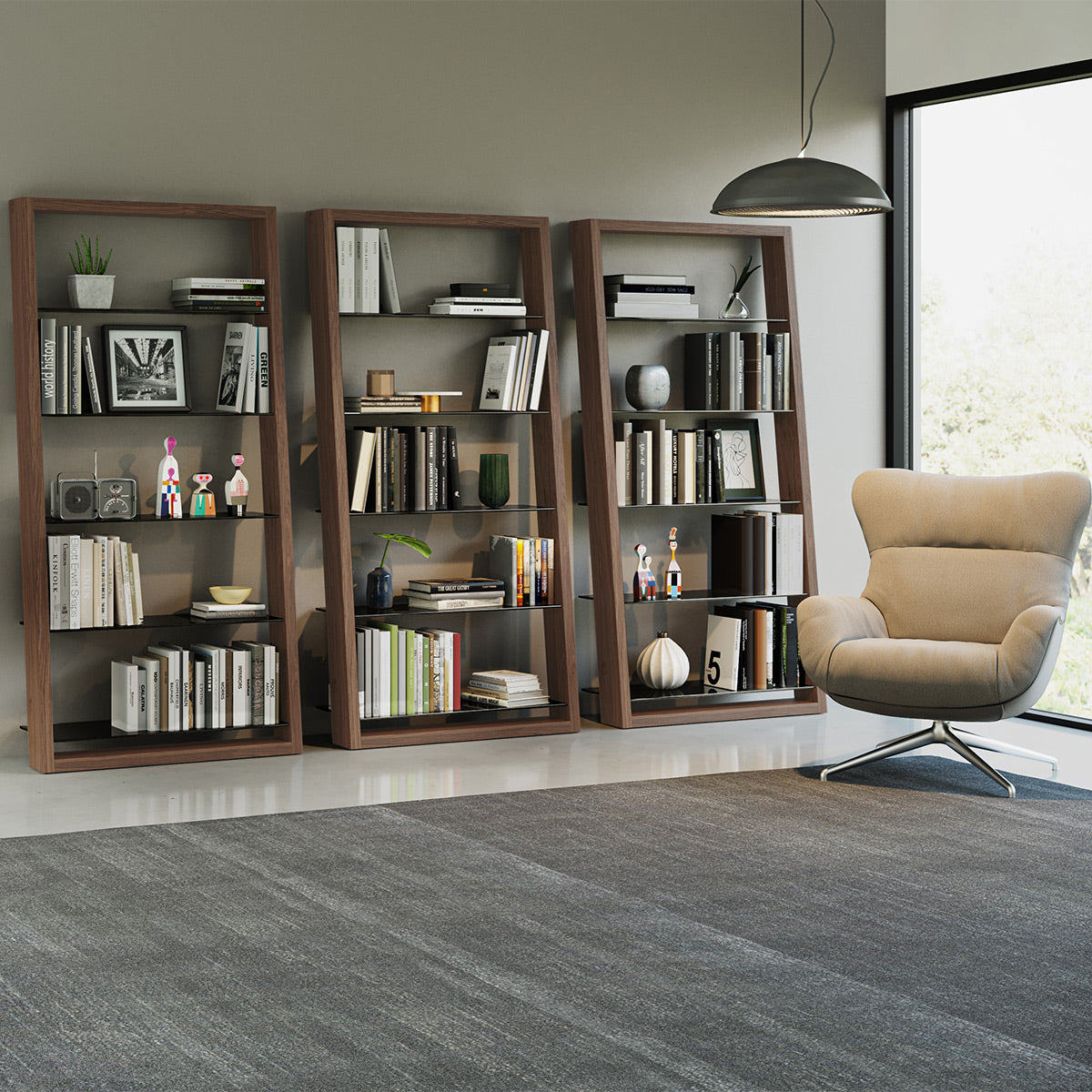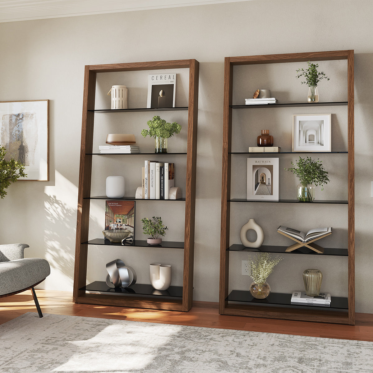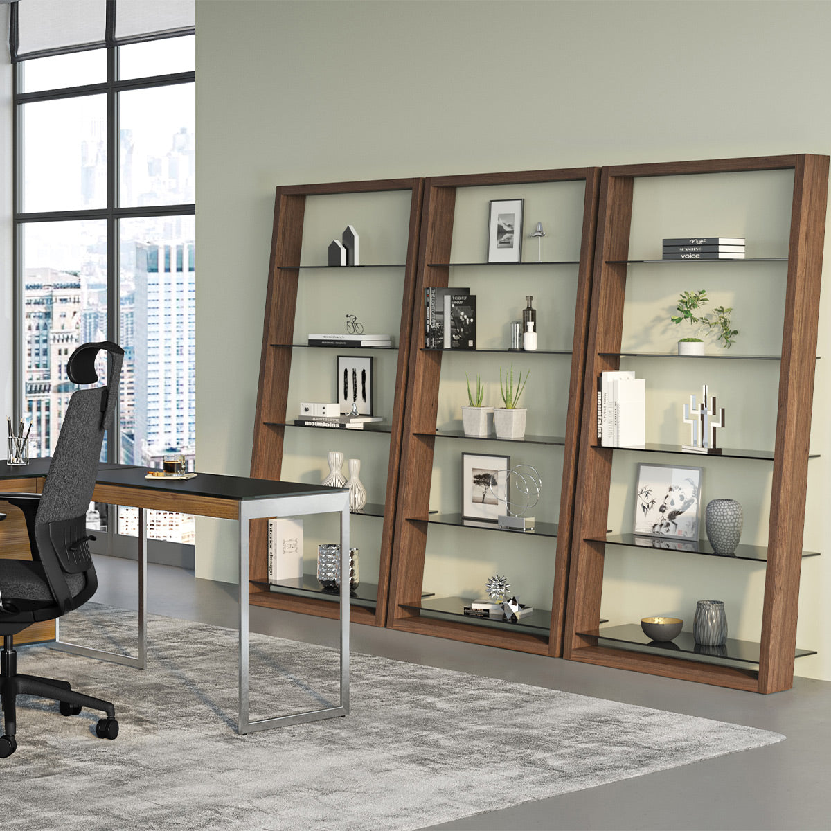 BDI Eileen 2.0 5166 Leaning Shelf with Grey-Tinted Glass Shelves (Natural Walnut)