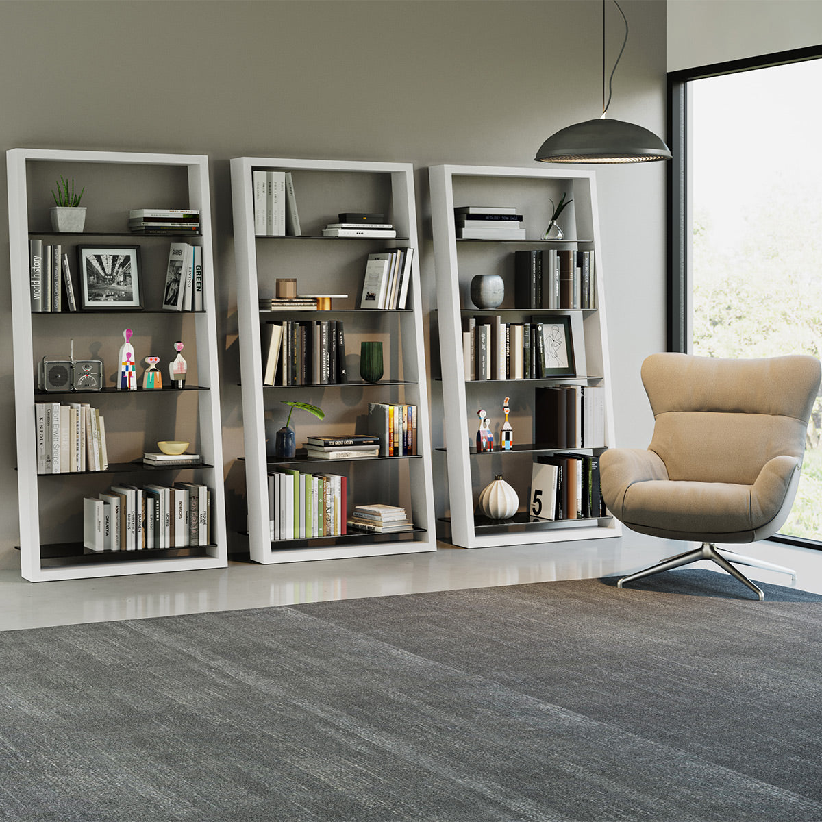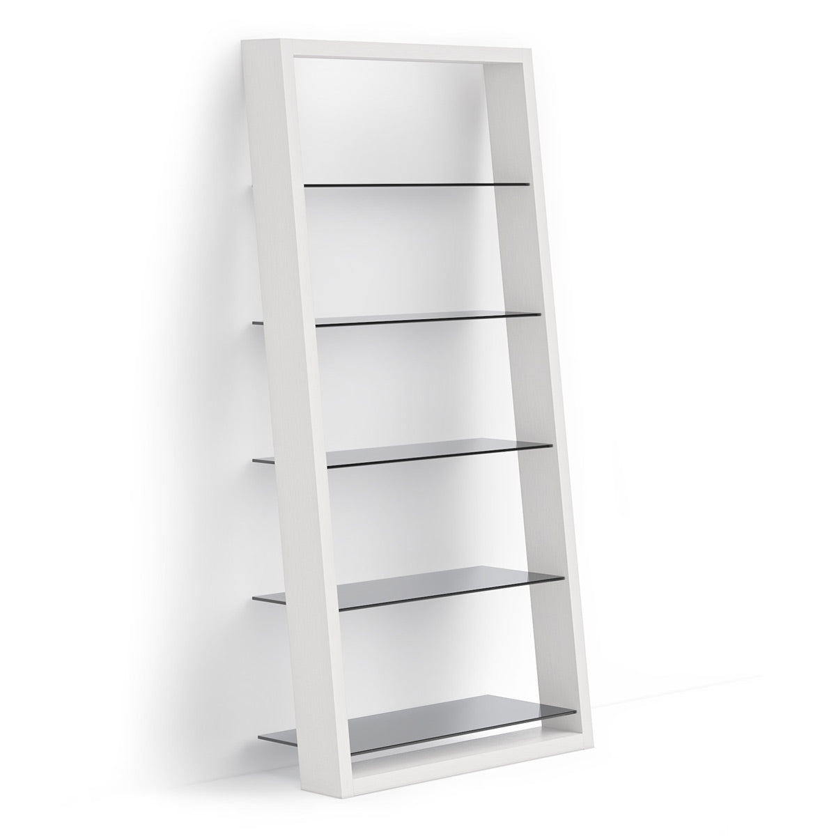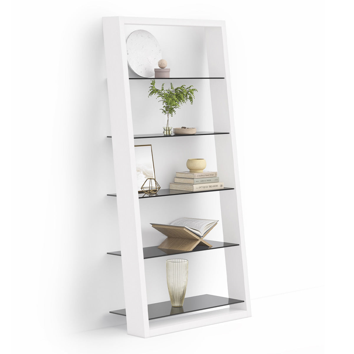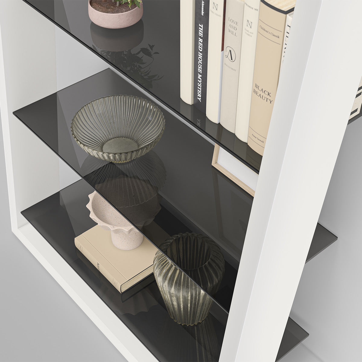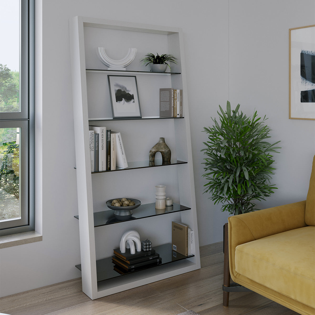 The attractive Eileen leaning shelf looks great alone or when combined in groups to create a complete wall system. The shelf rests securely against the wall and its tempered grey tinted shelves are perfect for books or displaying your favorite items. Available in multiple finishes, all with grey tinted glass shelves. These tempered glass shelves will hold up to 50lbs.