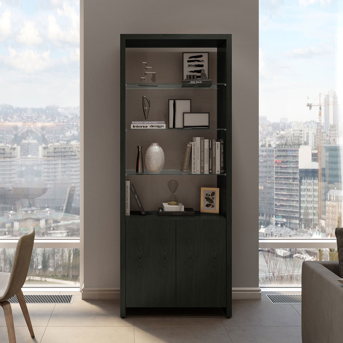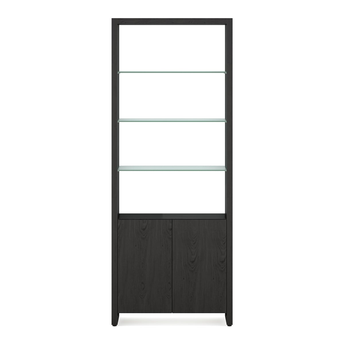 The BDI Linea 5802 is a modern double bookcase with tempered glass shelves that looks great alone or combined with other Linea Shelving models to create a complete wall system or room divider. Perfect for displaying a library of books, collectibles, and family treasures or storing items away, the Linea 5802 double shelf provides a versatile open and enclosed storage combination. Soft-close doors conceal an additional adjustable glass shelf, while a generous cut-out in the lower shelf of the cabinet allows for organized connections and out-of-sight cord management. Finally, included hardware will enable you to anchor the shelf to a wall in any application easily.