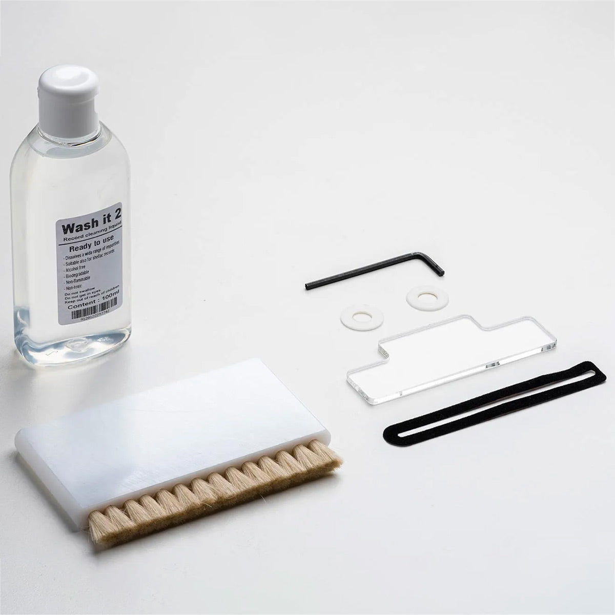 Included with the VC-E2 is a 100mL bottle of Wash it 2, Pro-Ject's eco-friendly, alcohol-free record cleaning fluid. This pre-mixed solution is ready to use, eliminating the need for dilution and ensuring the correct ratio for optimal cleaning. Unlike alcohol-based cleaners that can be abrasive over time, Wash it 2 is gentle on your records while effectively removing residues left from the manufacturing process or accumulated over time.