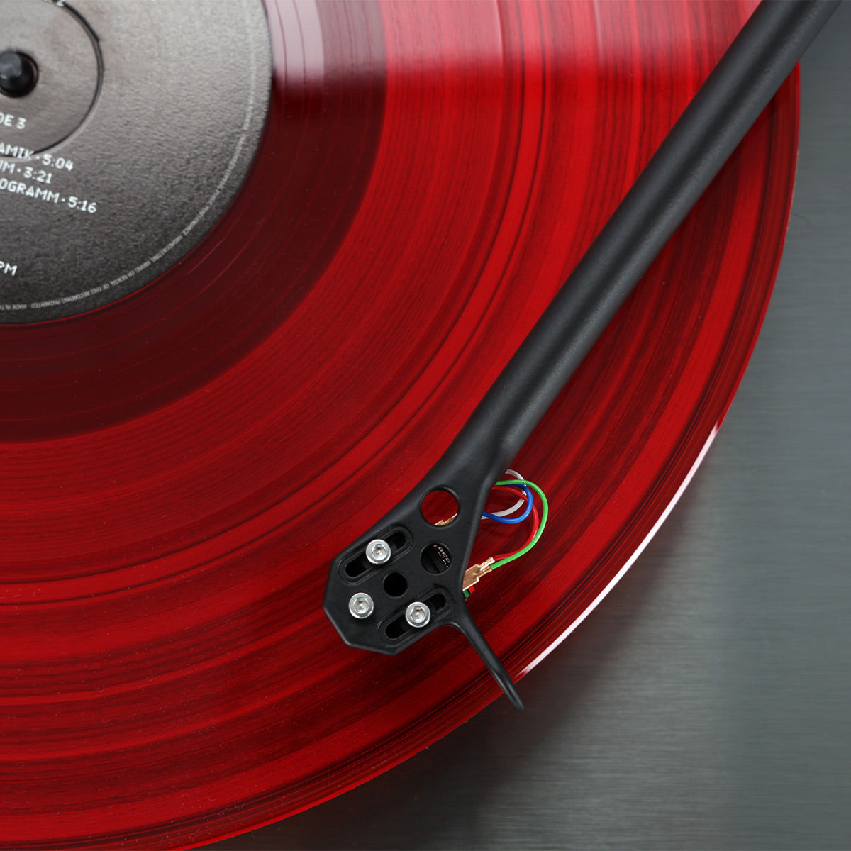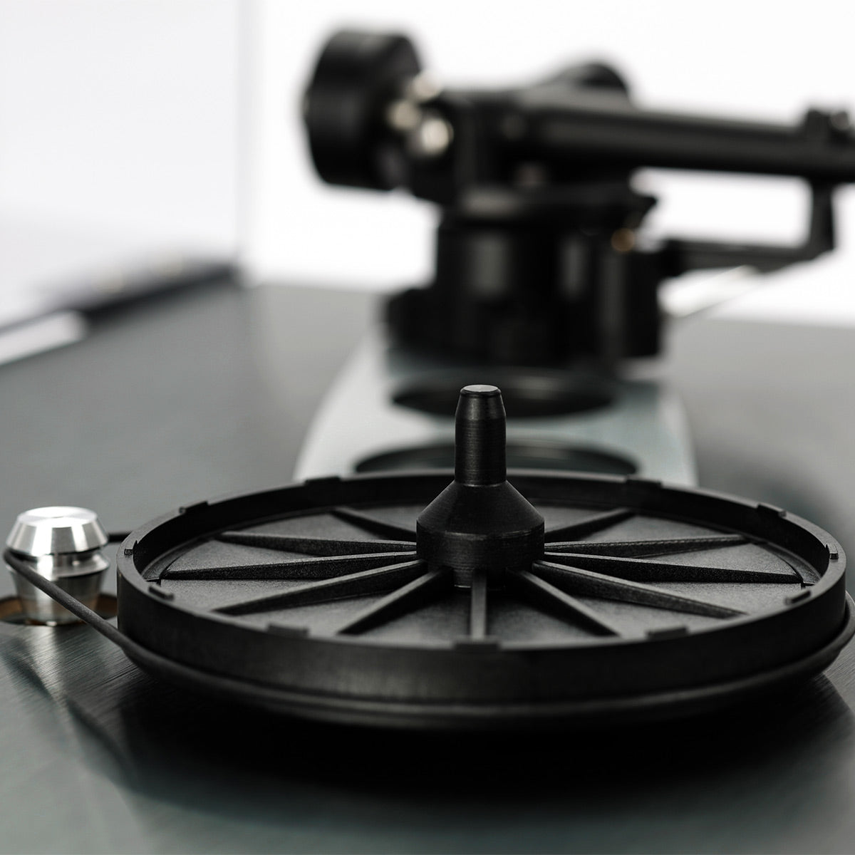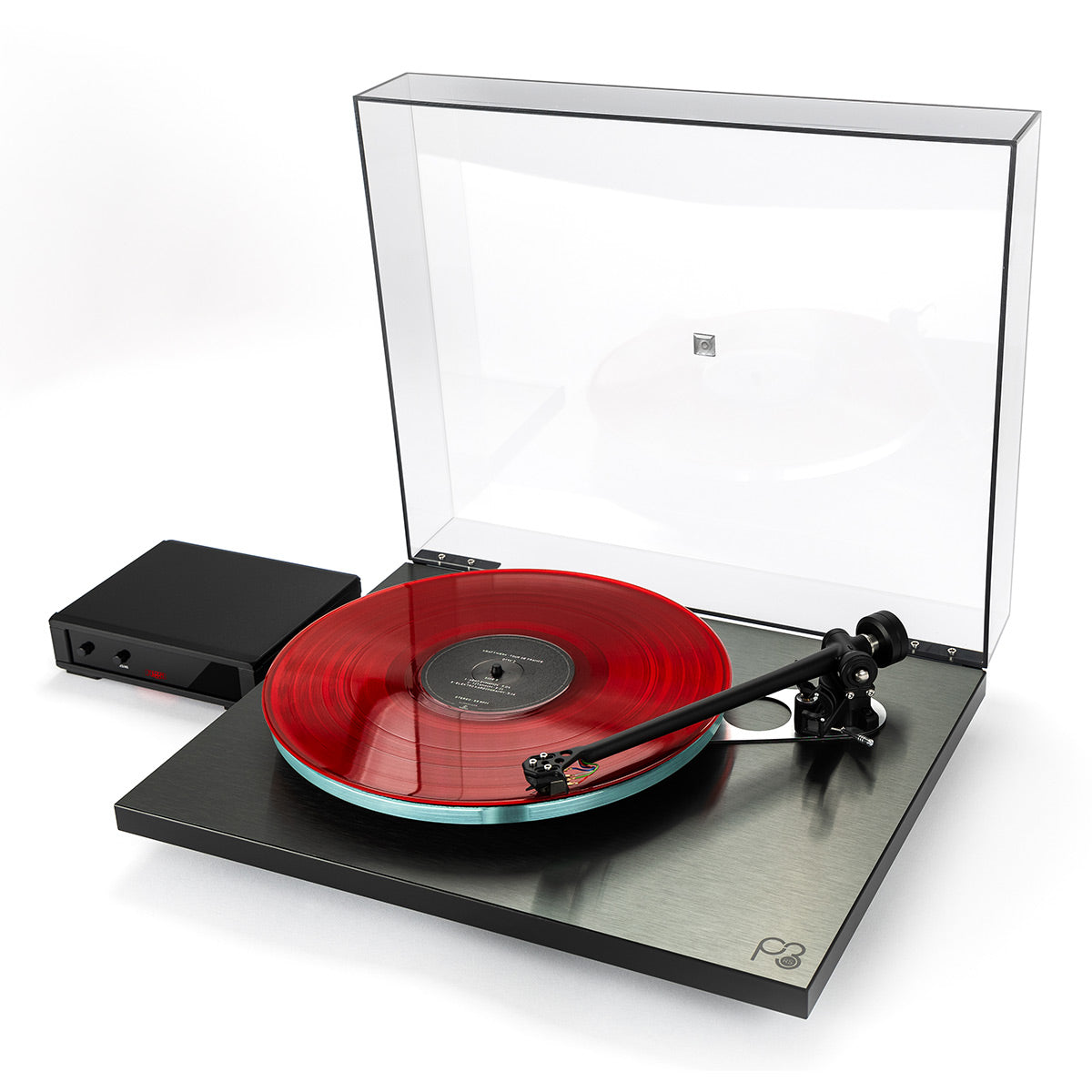 Brushed dark aluminum skinned HPL laminated plinth for improved rigidity.