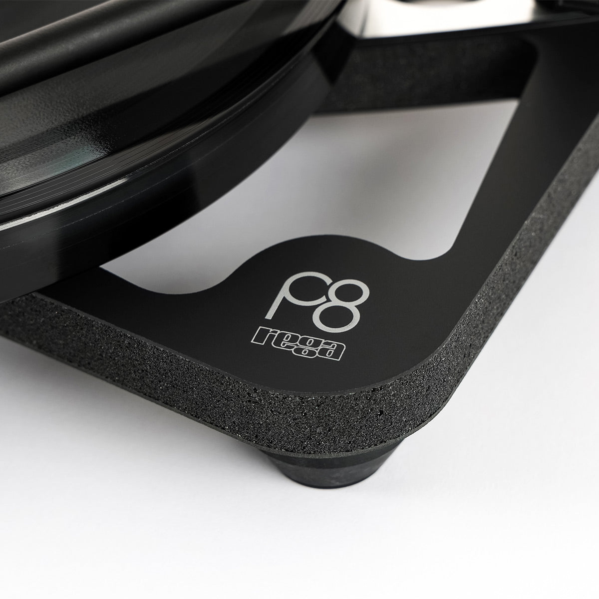 The Planar 8 is the second Rega turntable constructed using Rega’s latest ultra-lightweight Tancast 8 polyurethane foam core (a material developed for the aerospace industry). This material is sandwiched between two layers of HPL (high-pressure laminate). HPL is exceptionally thin and extremely rigid. This new construction makes the new Planar 8 skeletal plinth 30% lighter than the original RP8 while offering increased rigidity over the previous model.