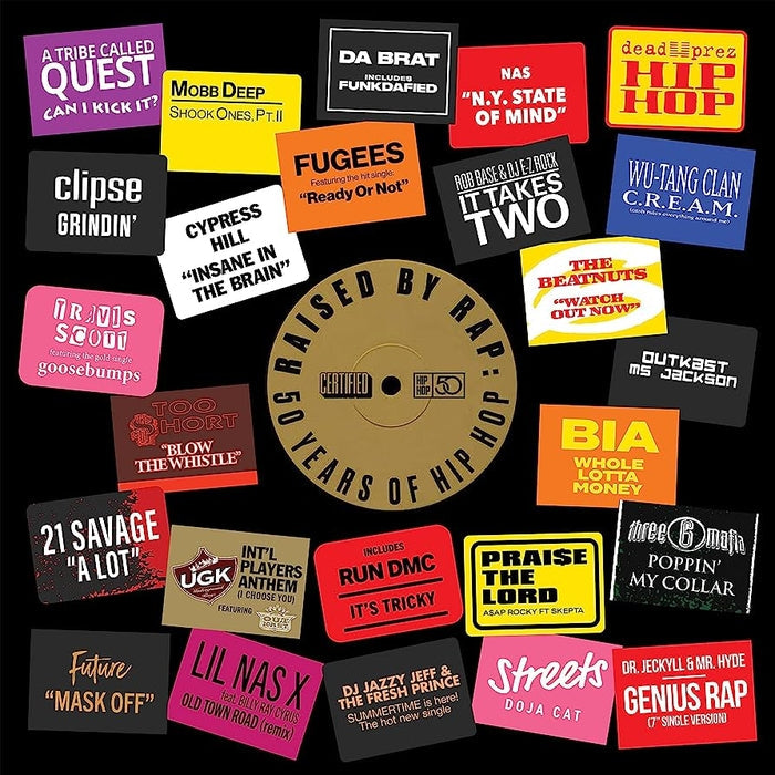 Raised By Rap: 50 Years Of Hip Hop is a compilation of 25 hip-hop tracks released as 2-LP on 28 Jul 2023. Raised By Rap: 50 Years Of Hip Hop includes a.o. the following tracks: “Dr. Jeckyll & Mr. Hyde - Genius Rap (7" Single Version)(1981”, “Rob Base & Dj Ez Rock - It Takes Two (radio Edit) (1988)”, “Mobb Deep - Shook Ones (part 2) (1995)”, “Fugees - Ready Or Not (1996)” and more.