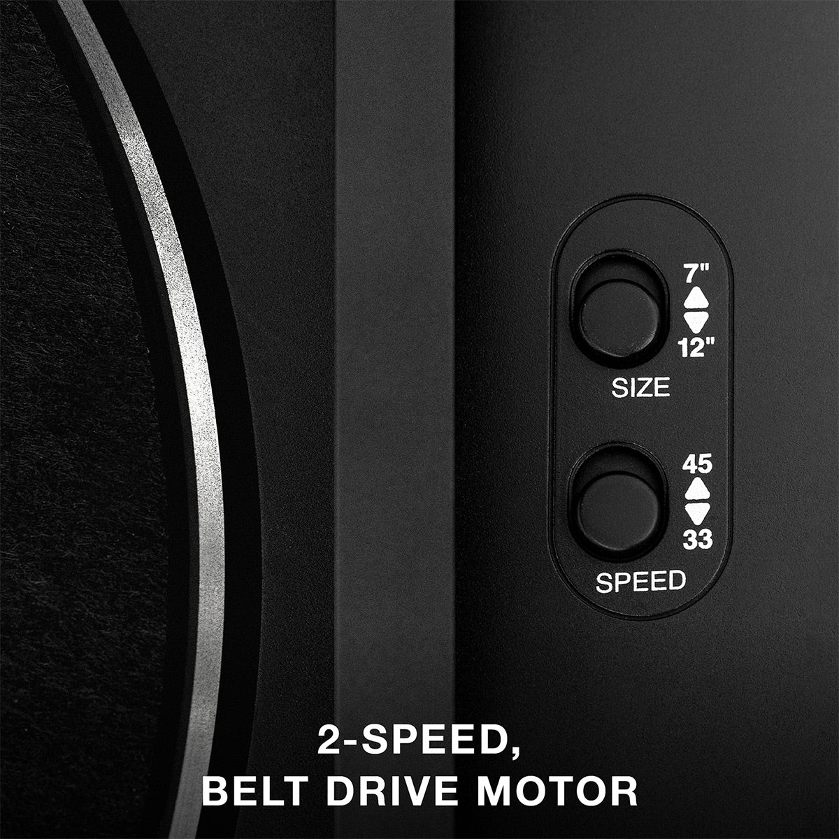 With the Victrola Automatic turntable, you can experience the sound of your favorite vinyl records with the simple push of a button. Victrola’s first fully automatic turntable was designed to make it easier than ever to listen to vinyl; just place your favorite record on the platter, press play, and watch the Automatic go to work. An intuitive control layout offers unique features, including a first-of-its-kind Repeat function, allowing you to continuously repeat the side of a record, keeping the party going for as long as you’d like.