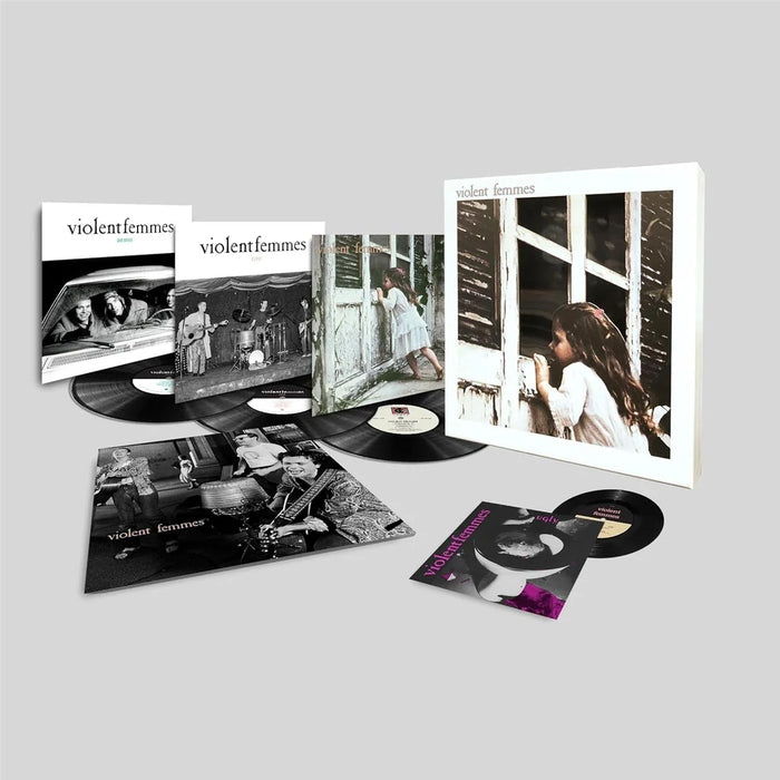 Expanded 40th anniversary Deluxe Edition of Violent Femmes' self-titled debut featuring the remastered album, plus B-sides, live sessions, and rare demos. Housed in a lift-top box with die-cut darkened window detail revealing the box contents, the set includes three 180-gram LPs plus a replica 7" single, along with a book featuring new liner notes by journalist David Fricke and interviews with the band. Includes the classic anthems "Blister in the Sun," "Please Do Not Go," "Gone Daddy Gone," and "Add It Up."